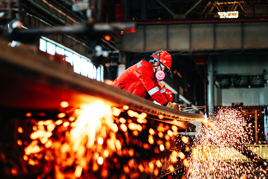 員工進(jìn)行鋼板下料作業(yè)。