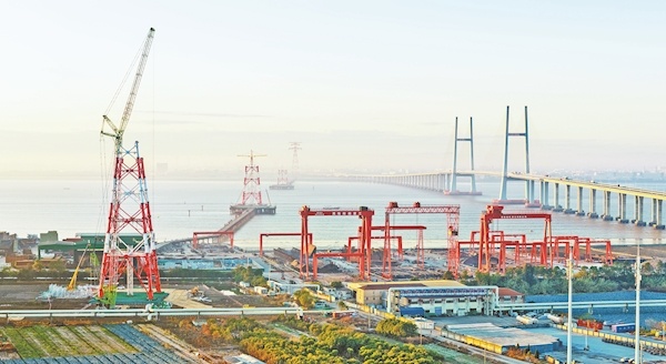 1月13日,濱?!貥?00千伏輸電線路工程全面進入架線階段。該工程是浙江省“十四五”規(guī)劃中,投資最大、跨江距離最長、輸送能源種類最豐富的500千伏項目。工程起自三門縣花橋鎮(zhèn)500千伏濱海變,止于臺州市路橋區(qū)500千伏柏樹變,全長141千米,建設(shè)鐵塔177基,預(yù)計2026年年中建成投運。屆時將從根本上優(yōu)化區(qū)域網(wǎng)架結(jié)構(gòu),形成多點連接的穩(wěn)固供電網(wǎng),為臺州經(jīng)濟社會高質(zhì)量發(fā)展注入強勁動能。圖為浙江省送變電工程有限公司施工人員在椒江大跨越段作業(yè)現(xiàn)場采用“雙平臂抱桿技術(shù)+智慧可視化集控系統(tǒng)”組立輸電鐵塔。(曹瓊蕾)