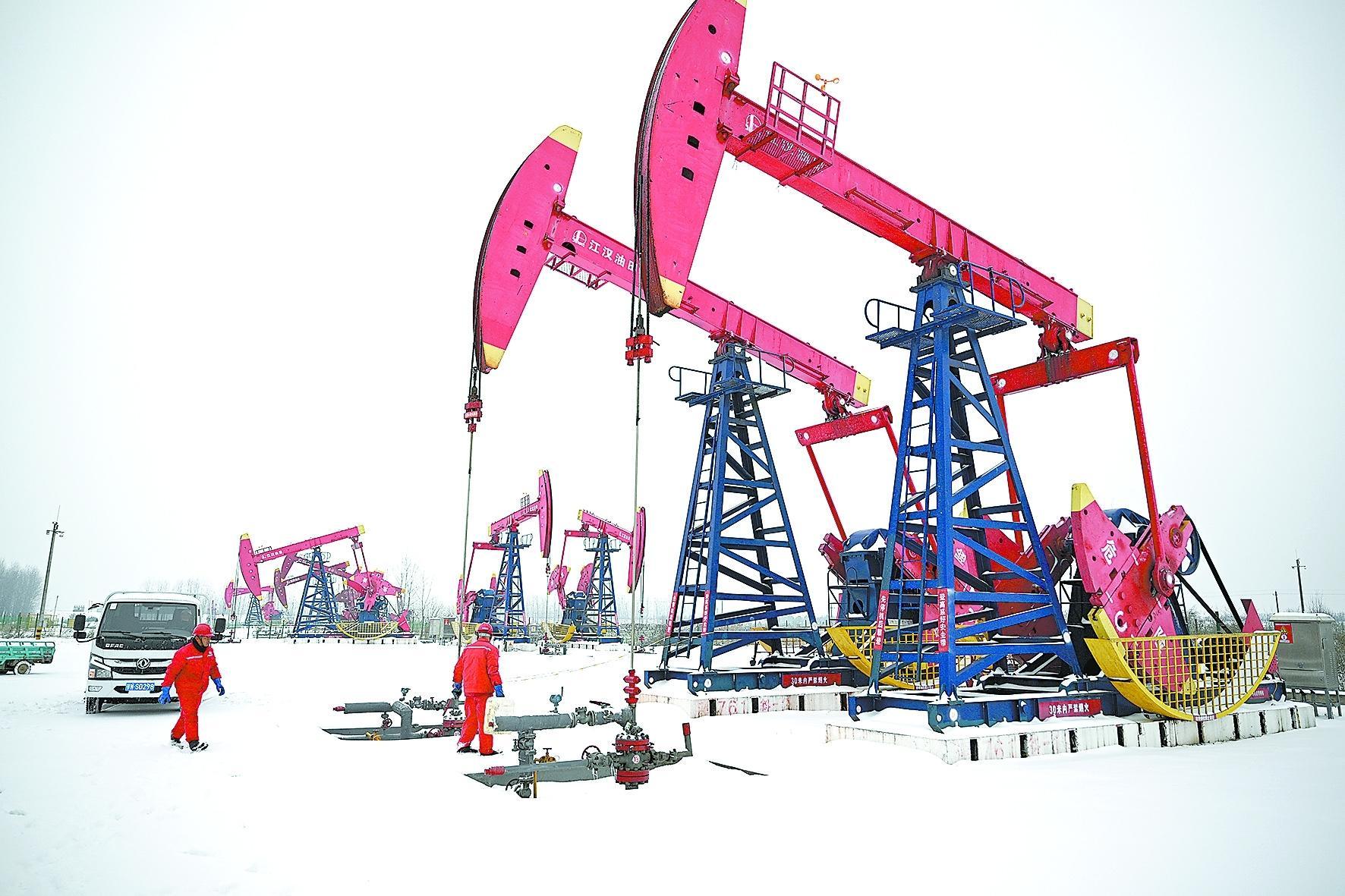 圖為1月20日江漢采油廠員工在潭口油區(qū)巡檢。宋國梁 攝 汪睿 寇濤 文