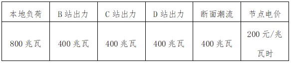 以本地負荷800兆瓦時出清結(jié)果為例,A變節(jié)點各場站出力、節(jié)點電價及斷面潮流數(shù)據(jù)見表2。