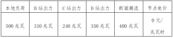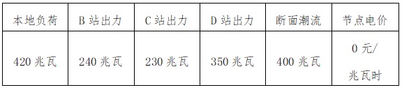 以本地負荷500兆瓦時出清結(jié)果為例,A變節(jié)點各場站出力、節(jié)點電價及斷面潮流數(shù)據(jù)見表4。