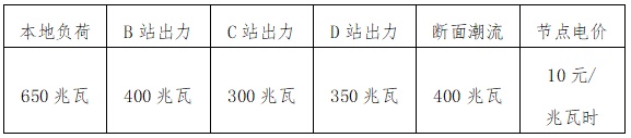 以本地負荷650兆瓦時出清結(jié)果為例,A變節(jié)點各場站出力、節(jié)點電價及斷面潮流數(shù)據(jù)見表3。
