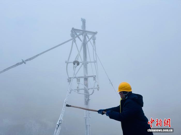 21日,南方電網(wǎng)廣東清遠(yuǎn)連州供電局運(yùn)維人員對(duì)10千伏潭嶺線(xiàn)開(kāi)展除冰。廣東電網(wǎng)公司供圖