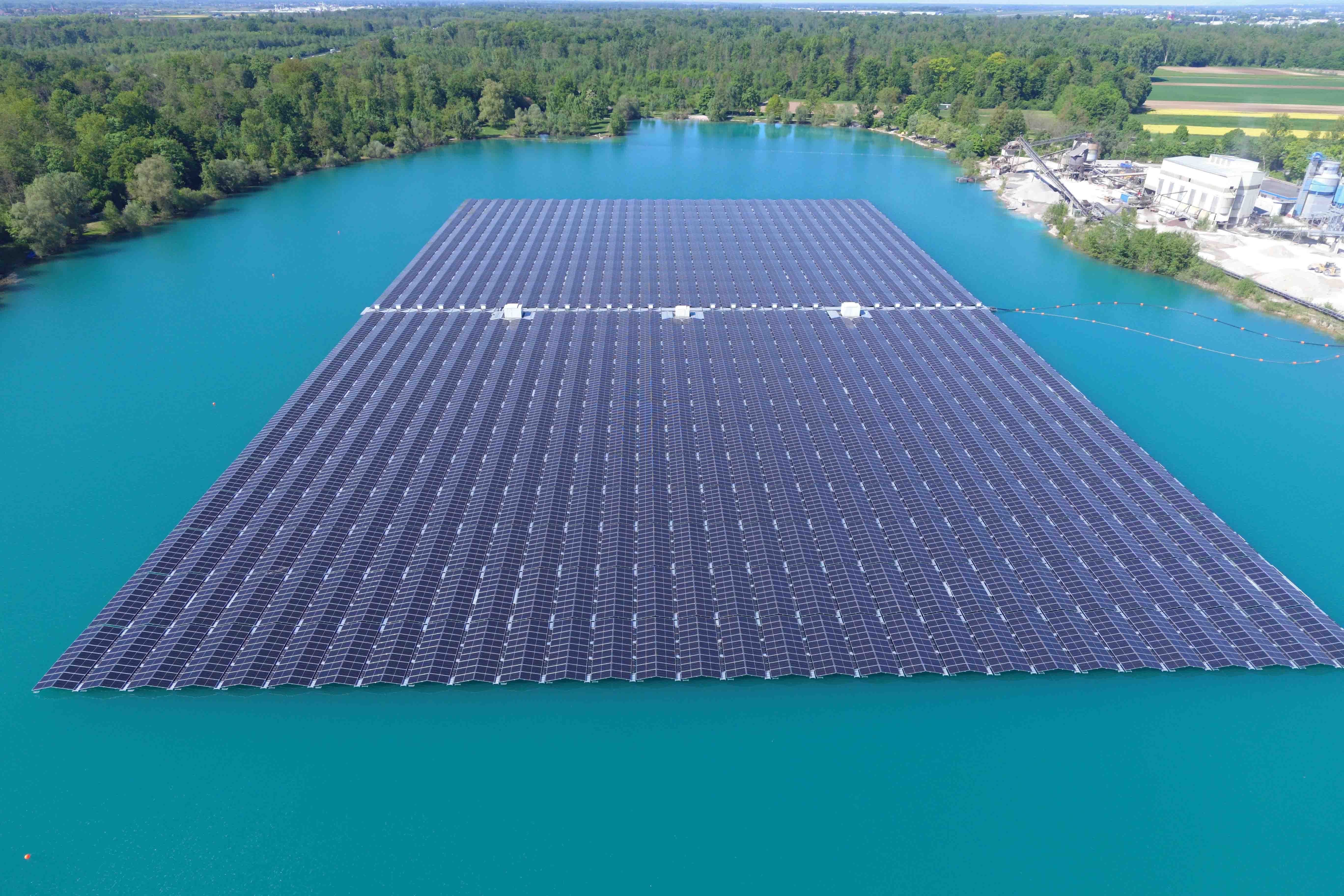 德國(guó)拉爾(Lahr)的瓦爾德馬滕湖(Waldmattensee)占地3公頃的漂浮式光伏電站,是巴登-符騰堡州規(guī)模最大的同類項(xiàng)目之一。該項(xiàng)目由13,000塊隆基高效光伏組件組成,安裝在750個(gè)相互連接的浮筒上,發(fā)電量可媲美一臺(tái)大型風(fēng)力發(fā)電機(jī)。