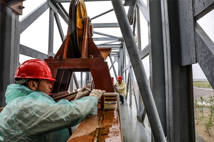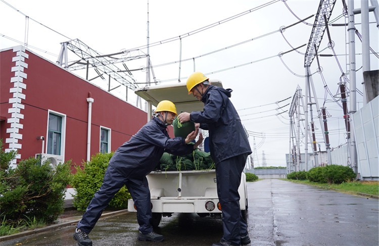 國網(wǎng)上海超高壓公司員工在±500千伏南橋換流站開展防臺風(fēng)防汛準(zhǔn)備工作。