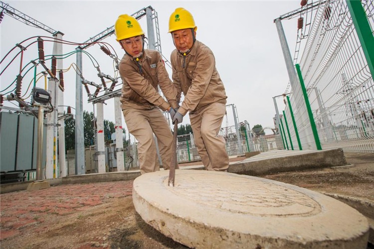 國網(wǎng)河南洛陽供電公司員工檢查110千伏勝利路變電站內(nèi)排水口。
