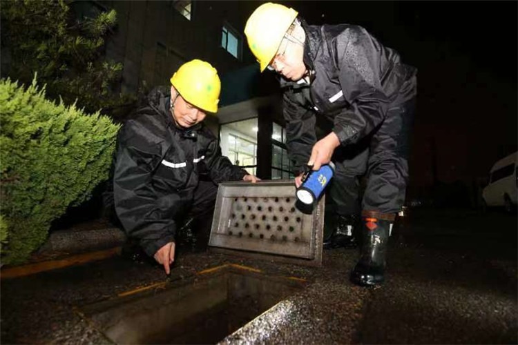國網(wǎng)山東德州供電公司員工加強變電站內(nèi)端子箱、積水池等防汛重點部位巡檢。