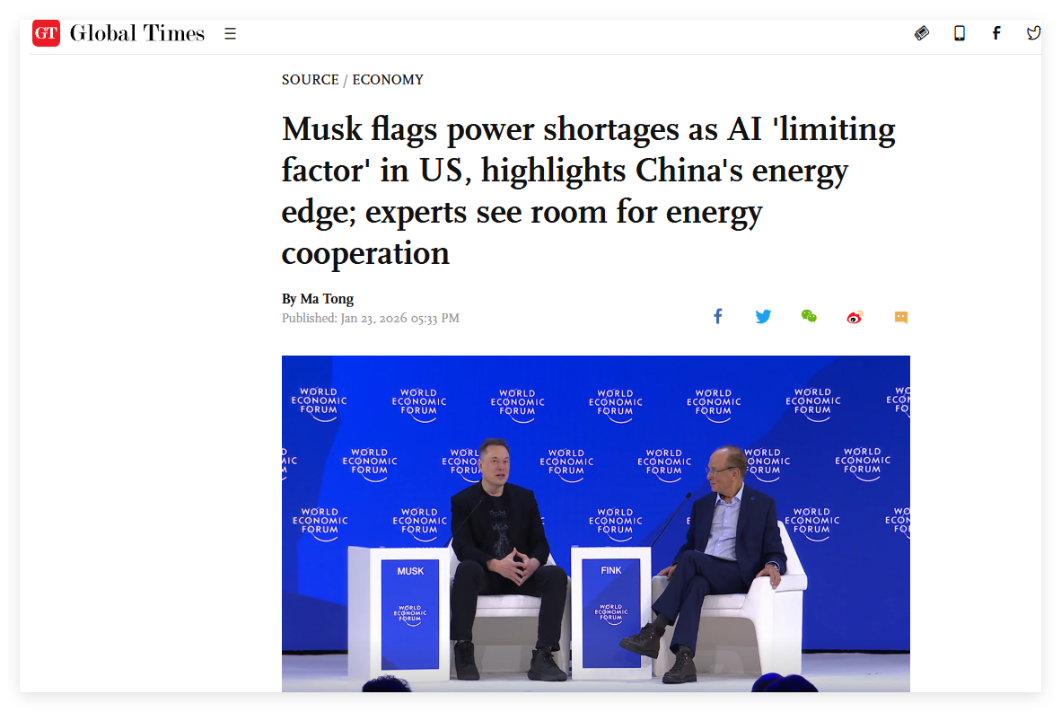 此前,諸如埃隆·馬斯克和黃仁勛等美國(guó)人工智能領(lǐng)域的知名企業(yè)家,也表達(dá)過(guò)對(duì)中國(guó)能源發(fā)展優(yōu)勢(shì)的稱贊,以及對(duì)美國(guó)在這方面裹足不前的擔(dān)憂。