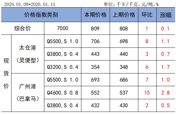 CECI沿海指數(shù)5500千卡/千克、5000千卡/千克現(xiàn)貨成交價較上期均上漲5元/噸、4元/噸。從樣本情況看,本期5500千卡/千克、5000千卡/千克規(guī)格品現(xiàn)貨成交價樣本價格區(qū)間分別為688-704元/噸、605-620元/噸。從樣本熱值分布看,5500千卡/千克、5000千卡/千克、4500千卡/千克樣本在總量中占比分別為17.1%、57.2%、25.7%。