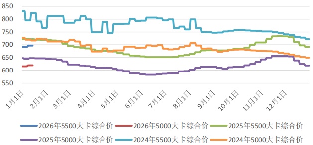 整體來看,國內(nèi)電煤市場整體供需偏寬松的格局未發(fā)生轉(zhuǎn)變。元旦后,環(huán)渤海港口庫存雖持續(xù)去化,但更多是受發(fā)運(yùn)成本倒掛導(dǎo)致調(diào)入量偏低,屬于被動去庫,絕對庫存水平仍處高位。市場情緒普遍謹(jǐn)慎,電廠依托充足的庫存,采購策略維持以長協(xié)煤拉運(yùn)和進(jìn)口煤補(bǔ)給為主,對市場煤僅保持剛性采購。盡管坑口價格小幅探漲對港口市場形成一定成本支撐,但需求無實質(zhì)性增加,煤價缺乏持續(xù)反彈的支撐。