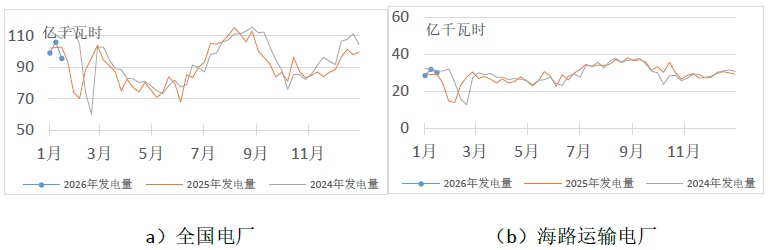 當(dāng)前,市場的核心博弈仍體現(xiàn)在寒潮帶來的日耗階段性回升與終端高庫存下實際采購需求不高之間的拉鋸?!八木拧焙卑殡S雨雪冰凍天氣,在推升供暖需求的同時,也將對煤炭生產(chǎn)及運(yùn)輸造成階段性干擾,市場存在短期供需收緊預(yù)期;但當(dāng)前終端庫存整體充足,補(bǔ)庫需求集中釋放的可能性不大。在坑口價格回落、發(fā)運(yùn)成本支撐及寒潮預(yù)期的共同作用下,港口市場參與主體對價格預(yù)期分歧明顯,預(yù)計市場交易僵持狀態(tài)延續(xù);此外,當(dāng)前貿(mào)易商采購較為謹(jǐn)慎,雨雪冰凍天氣也將導(dǎo)致坑口拉煤車輛減少,若煤礦銷售不暢,坑口價格仍將承壓。綜合判斷,由于本輪寒潮持續(xù)時間較短,其影響較為有限,難以改變市場供需格局。預(yù)計后續(xù)坑口價格將延續(xù)窄幅震蕩,而港口價格在僵持狀態(tài)下保持弱穩(wěn)運(yùn)行。