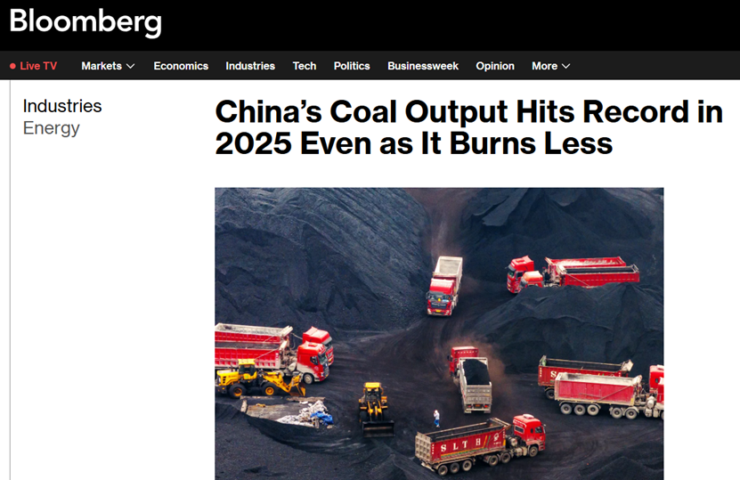 彭博社此前發(fā)文稱,盡管由于清潔能源的大增,中國的發(fā)電廠減少了化石燃料的消耗,但根據(jù)此前公布的數(shù)據(jù),即使在第二季度的安全檢查導(dǎo)致產(chǎn)量下滑1.2%、火電發(fā)電量首次出現(xiàn)十年來年度下降的背景下,中國煤炭產(chǎn)量在2025年仍創(chuàng)下歷史新高。