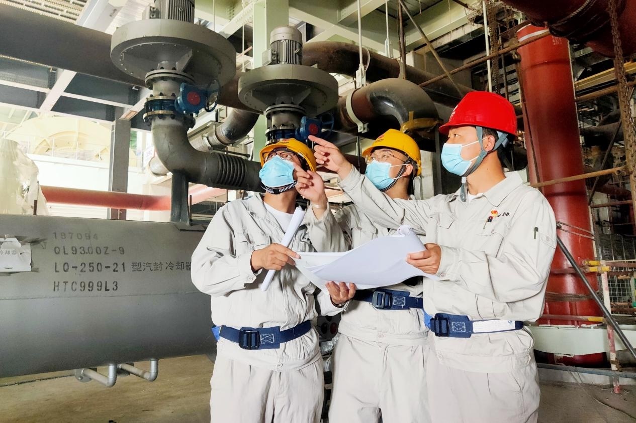 圖為國能勝利電廠黨員干部以身作則檢查供熱首站。孫浩攝