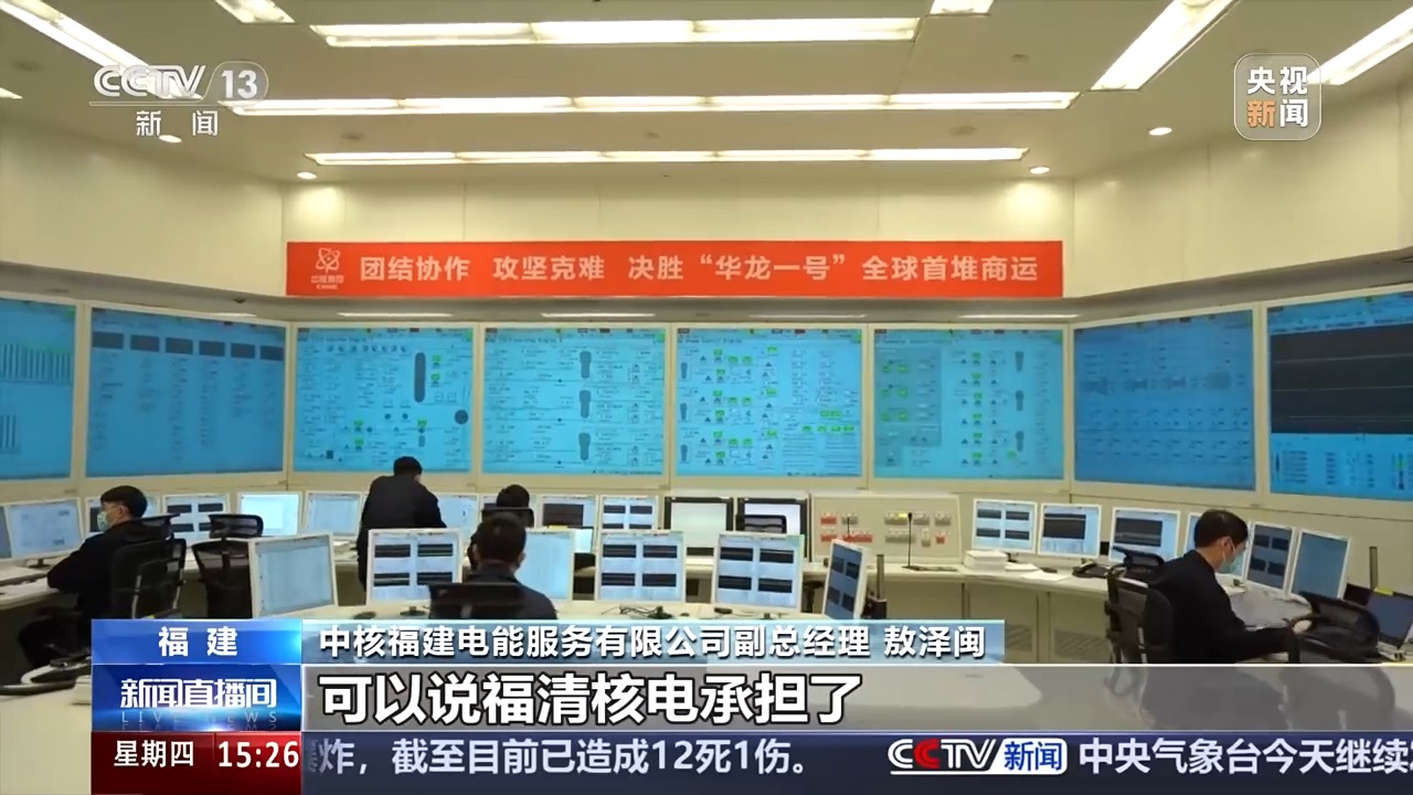 中核集團福清核電生產(chǎn)計劃處副處長 付誠:“華龍一號”一天大概可以發(fā)出2700萬到2800萬度電,它的發(fā)電能力是非常優(yōu)秀的,當(dāng)前我們整個福清核電全年的發(fā)電能力大概是500億千瓦時。