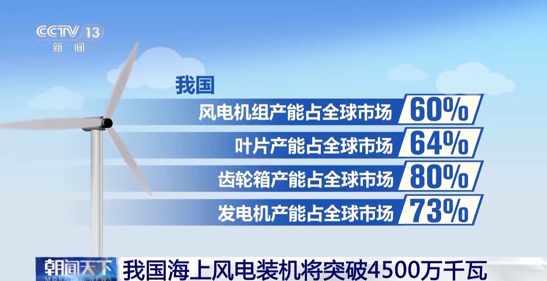 中國電力企業(yè)聯(lián)合會秘書長 郝英杰:近年來,我國海上風電產(chǎn)業(yè)化發(fā)展迅速,目前我國海上風電機組最大單機容量達到20兆瓦級,累計裝機容量從2018年的不到500萬千瓦,到今年底有望突破4500萬千瓦,將連續(xù)四年位居全球首位。