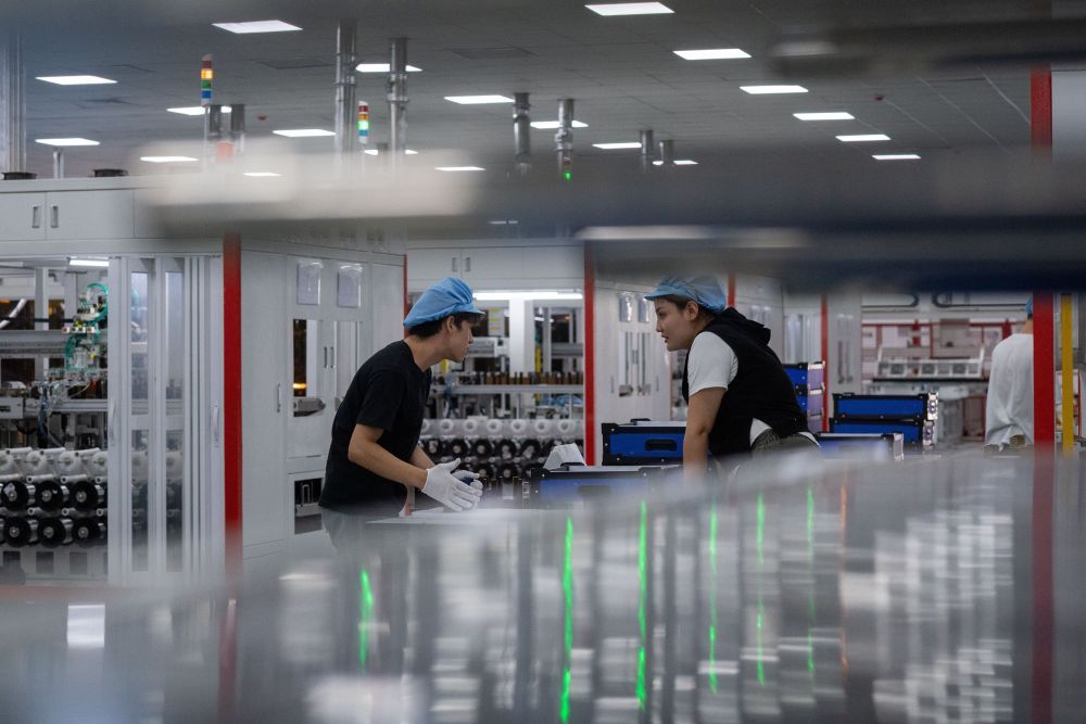 2025年9月22日,工人在新疆巴音郭楞蒙古自治州若羌縣的國(guó)晟企誠(chéng)新能源有限公司生產(chǎn)光伏電池片。新華社記者江文耀 攝