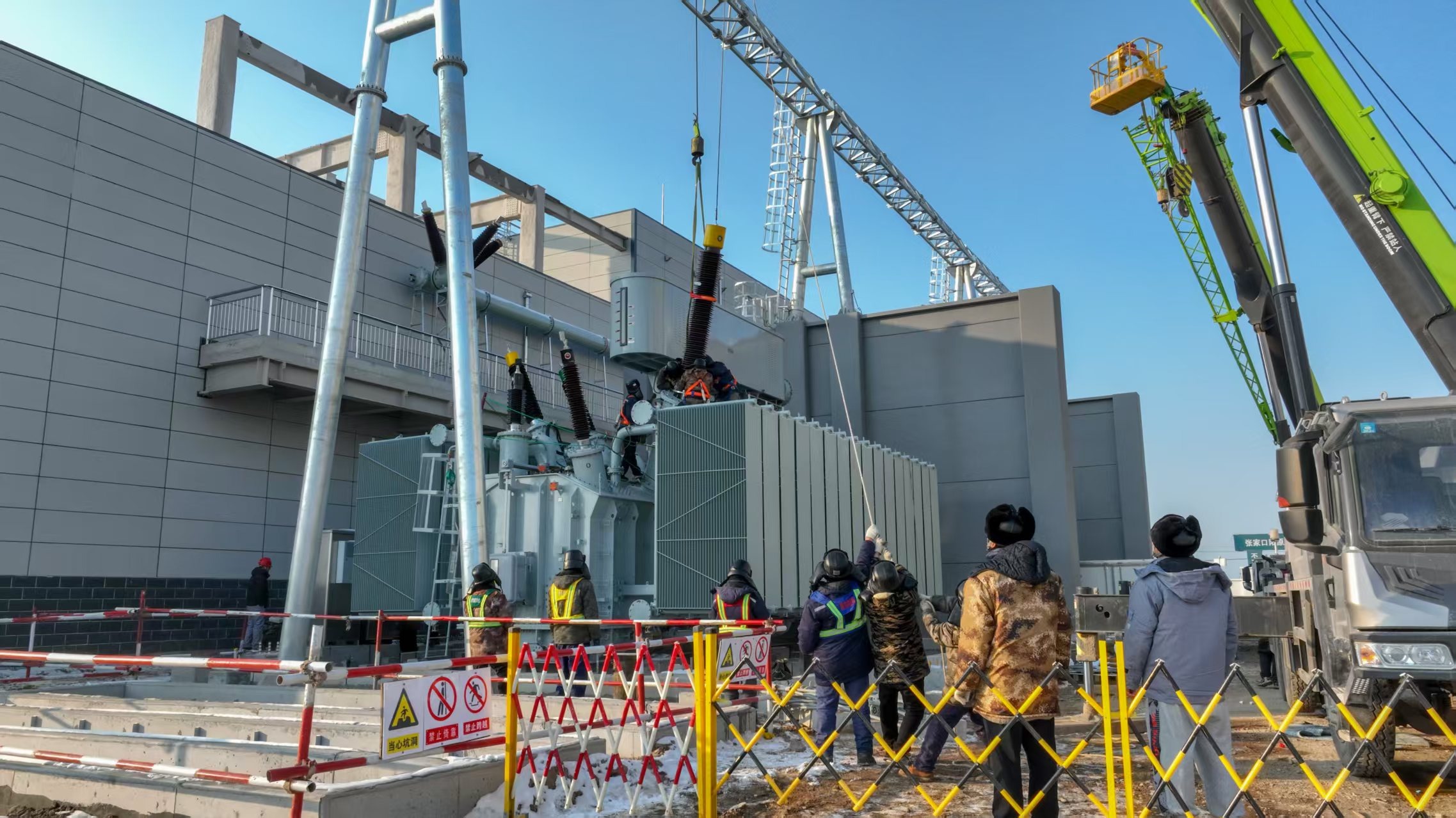 “項(xiàng)目本期安裝兩臺(tái)容量為180兆伏安的主變壓器,該設(shè)備是項(xiàng)目的核心電力設(shè)備之一,具備高效節(jié)能、運(yùn)行穩(wěn)定等諸多優(yōu)勢(shì)。此次安裝完成的主變壓器,為后續(xù)設(shè)備引線安裝、試驗(yàn)及保護(hù)調(diào)試工作開展奠定了堅(jiān)實(shí)基礎(chǔ)。”該工程施工項(xiàng)目經(jīng)理申成成說,項(xiàng)目于今年3月復(fù)工建設(shè),目前土建工程已完成96%。下一步將全面進(jìn)行電氣二次施工與調(diào)試工作,計(jì)劃于2026年5月正式投入運(yùn)行。