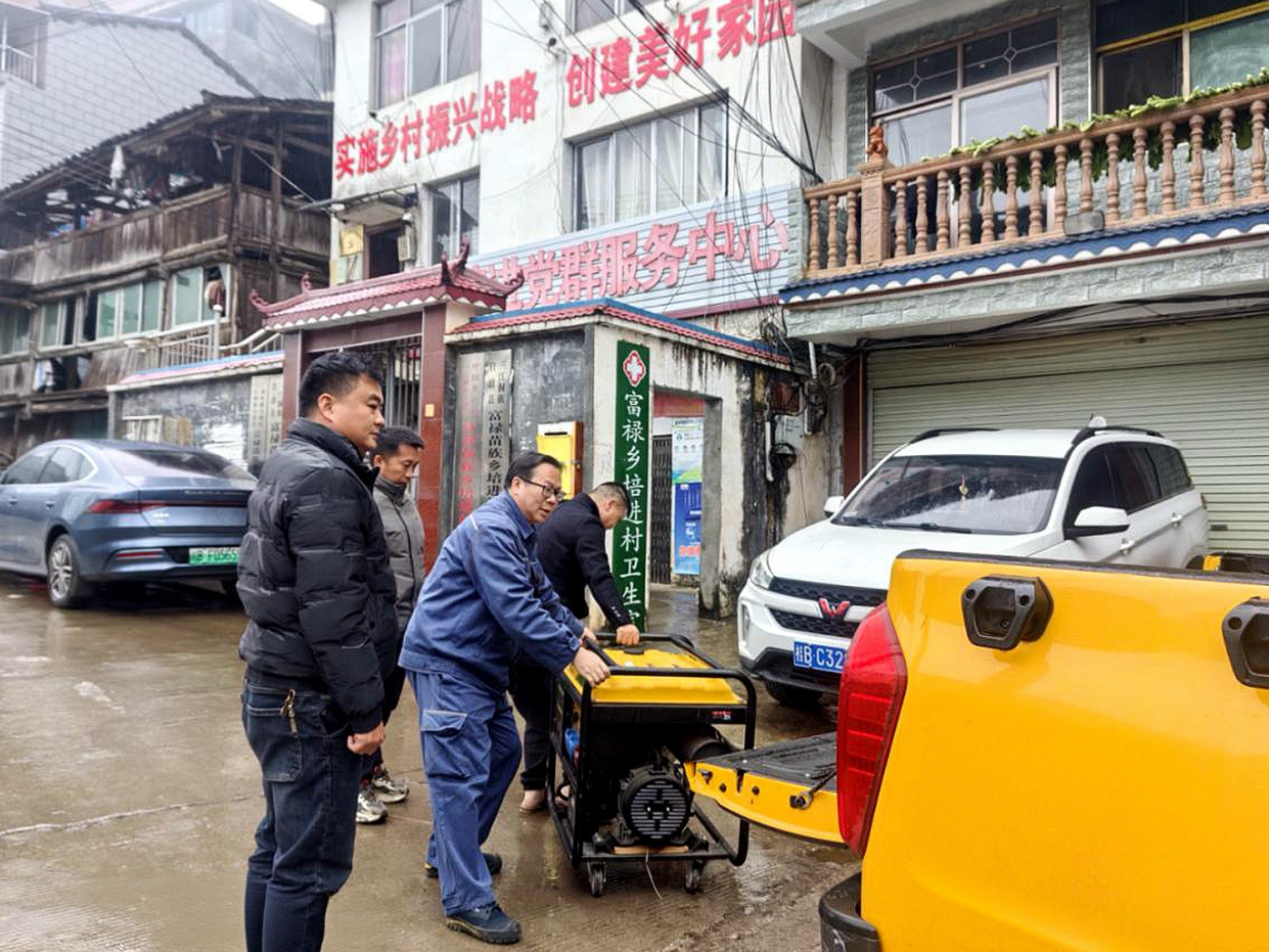 圖為預(yù)防低溫雨雪天氣造成道路覆冰,車輛難以通行,南方電網(wǎng)廣西新電力集團(tuán)三江供電公司提前將應(yīng)急發(fā)電機(jī)前置到村寨。李東祥 攝