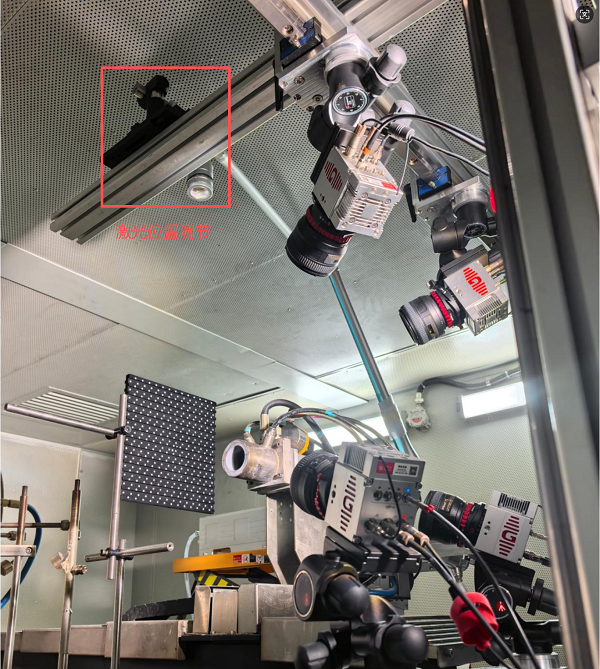 步驟一:測量區(qū)域光學(xué)定位與空間定義。實驗首先對燃燒噴口近場測量區(qū)域進行光學(xué)定位,通過機械基準與激光指示對測量體積中心位置進行精確標定,明確三維測量區(qū)域在噴口軸向與徑向的空間范圍,為后續(xù)多相機布置與體測量坐標系統(tǒng)提供參考基準。