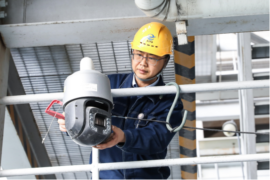 鳳電公司信息技術(shù)人員檢查檢修現(xiàn)場5G攝像頭。王善戰(zhàn) 攝