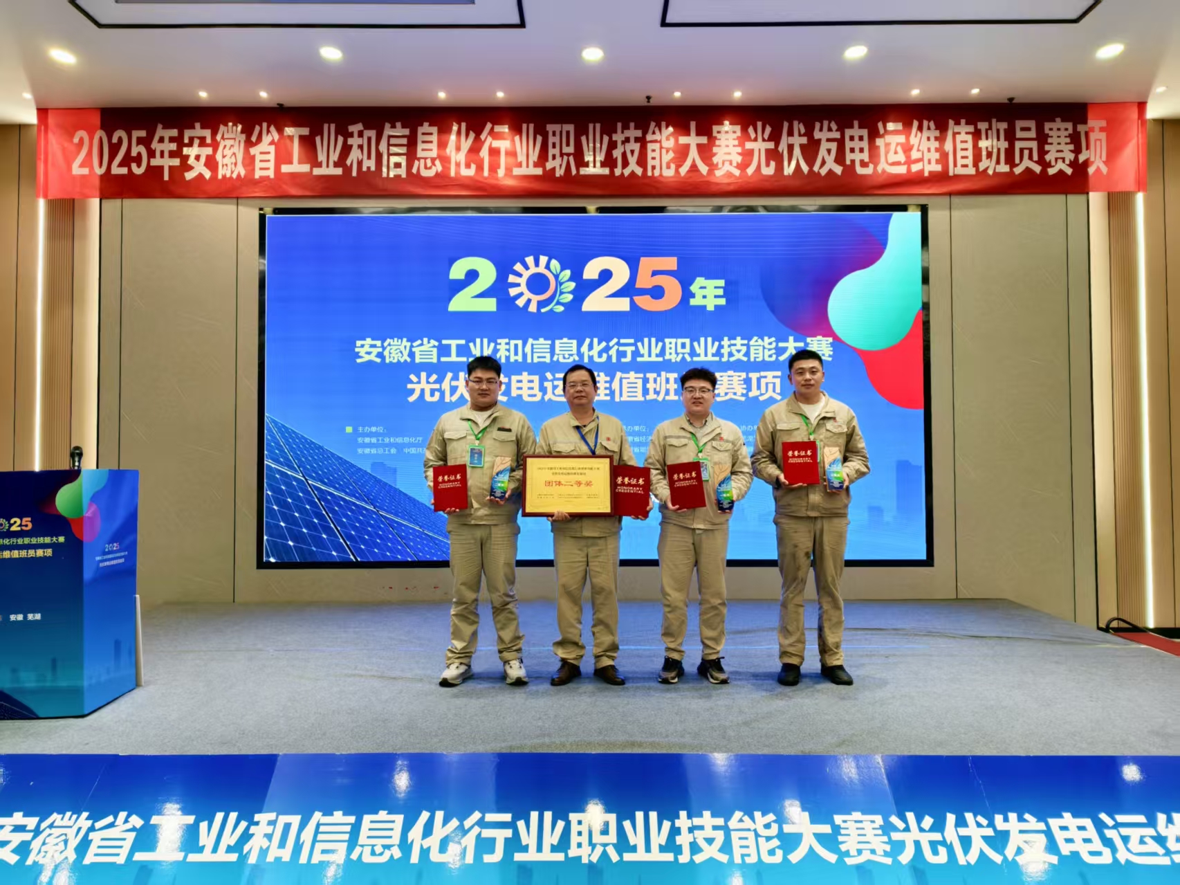 中國(guó)能源新聞網(wǎng)訊(倪守玉 齊軍)11月16日,2025年安徽省工業(yè)和信息化行業(yè)職業(yè)技能大賽——光伏發(fā)電運(yùn)維值班員賽項(xiàng)圓滿落幕,由新能源公司辛江、趙晨旭、李昊天三名職工組成的大唐安徽公司代表隊(duì)?wèi){借扎實(shí)的專業(yè)功底、精湛的實(shí)操技能以及默契的團(tuán)隊(duì)協(xié)作,在激烈比拼中脫穎而出,三名選手分別獲得個(gè)人一等獎(jiǎng)、二等獎(jiǎng)、三等獎(jiǎng),參賽團(tuán)隊(duì)榮獲團(tuán)體二等獎(jiǎng),充分展現(xiàn)了安徽公司光伏運(yùn)維人才隊(duì)伍的專業(yè)技能和綜合素養(yǎng)。