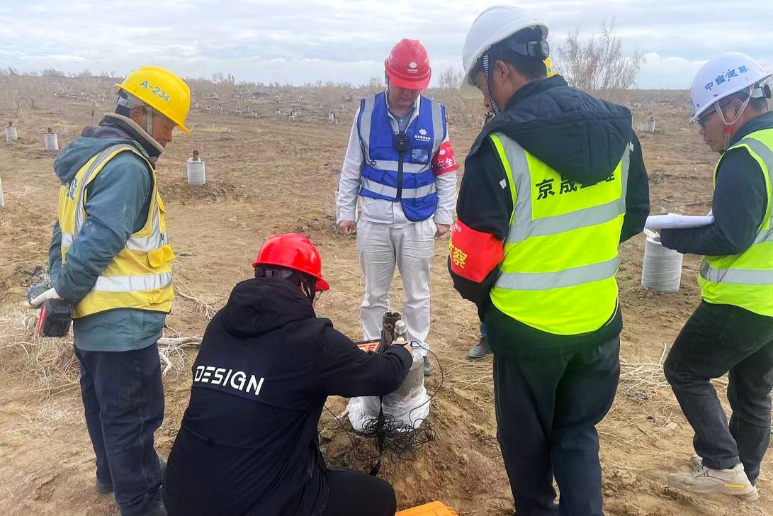 如今,張志超負(fù)責(zé)的光伏區(qū)域不僅工程進(jìn)度領(lǐng)先,設(shè)備完好率更是達(dá)到100%。他的筆記本里夾著一張珍貴照片:2024年10月開工時(shí),團(tuán)隊(duì)成員在漫天黃沙中笑得燦爛。盡管風(fēng)沙彌漫,每個(gè)人的笑容都比陽(yáng)光更明媚。