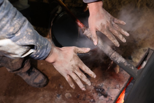 紅薯滾燙,筆者在兩手間來回倒騰散熱。曹少飛卻利落地剝開外皮,咬了一大口,鼓著腮幫子解釋:“數(shù)九寒冬施工,對我們鉆探人來說是家常便飯,但最大的難題是防凍。水管一結冰,鉆機就斷了‘血脈’——水對鉆機,就像血液對人一樣重要,沒水根本轉不起來。所以我們得時不時給泵體烤火、給膠管裹上保溫層,一刻不敢松懈,才能保證管路正常供水?!?/p>