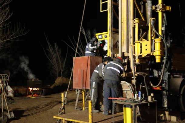 1月25日傍晚7點,在距離中心礦區(qū)22公里外的補連塔煤礦12煤五、六盤區(qū)異常區(qū)補勘工程施工現(xiàn)場,國家能源集團神東煤炭地測公司(簡稱“神東煤炭地測公司”)勘探隊地面三組鉆探工曹少飛正半跪在冰冷的土地上,俯身查看泥漿泵工作情況。他的手套沾滿油污,呼出的白氣在寒風中迅速消散。