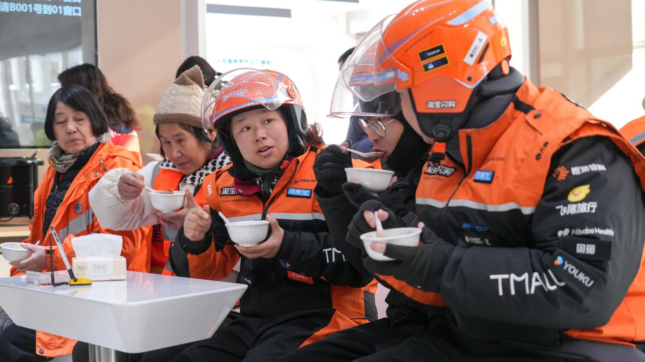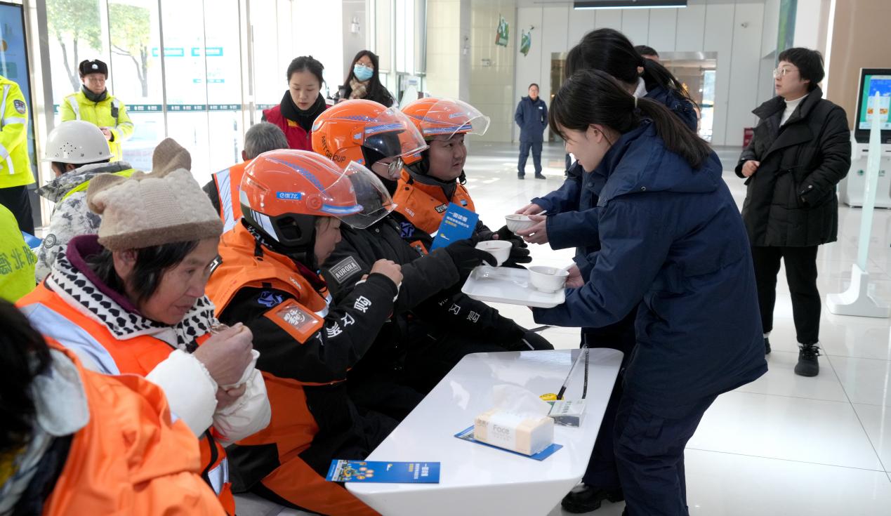 上午10時(shí),30名戶外勞動者代表陸續(xù)走進(jìn)溫馨布置的愛心驛站休憩、參觀。在工作人員的引導(dǎo)下,詳細(xì)了解飲水、充電、休憩等便捷服務(wù)功能。大家剛看完驛站內(nèi)便民設(shè)施,工作人員便將一碗碗熱氣騰騰、香甜軟糯的臘八粥遞到大家手中,瞬間驅(qū)散了冬日的寒意。