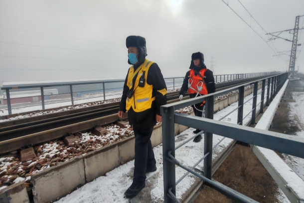 “停止作業(yè),正線來車,避車臺避車!”對講機(jī)里傳來防護(hù)員金自軍的提醒。大家迅速退至安全避車點(diǎn),卻仍緊盯過車時橋體狀態(tài)。不一會兒,一列檢修作業(yè)車緩緩?fù)ㄟ^,橋梁在載荷作用下輕微震顫,風(fēng)壓裹著雪粒撲面而來。作業(yè)車駛離后,現(xiàn)場又歸于寧靜,有著十幾年橋梁守護(hù)經(jīng)驗(yàn)的侯桂興不禁感嘆:“每一次列車平穩(wěn)通過,背后都有我們多走的一步、多看的一眼、多敲的一錘。”